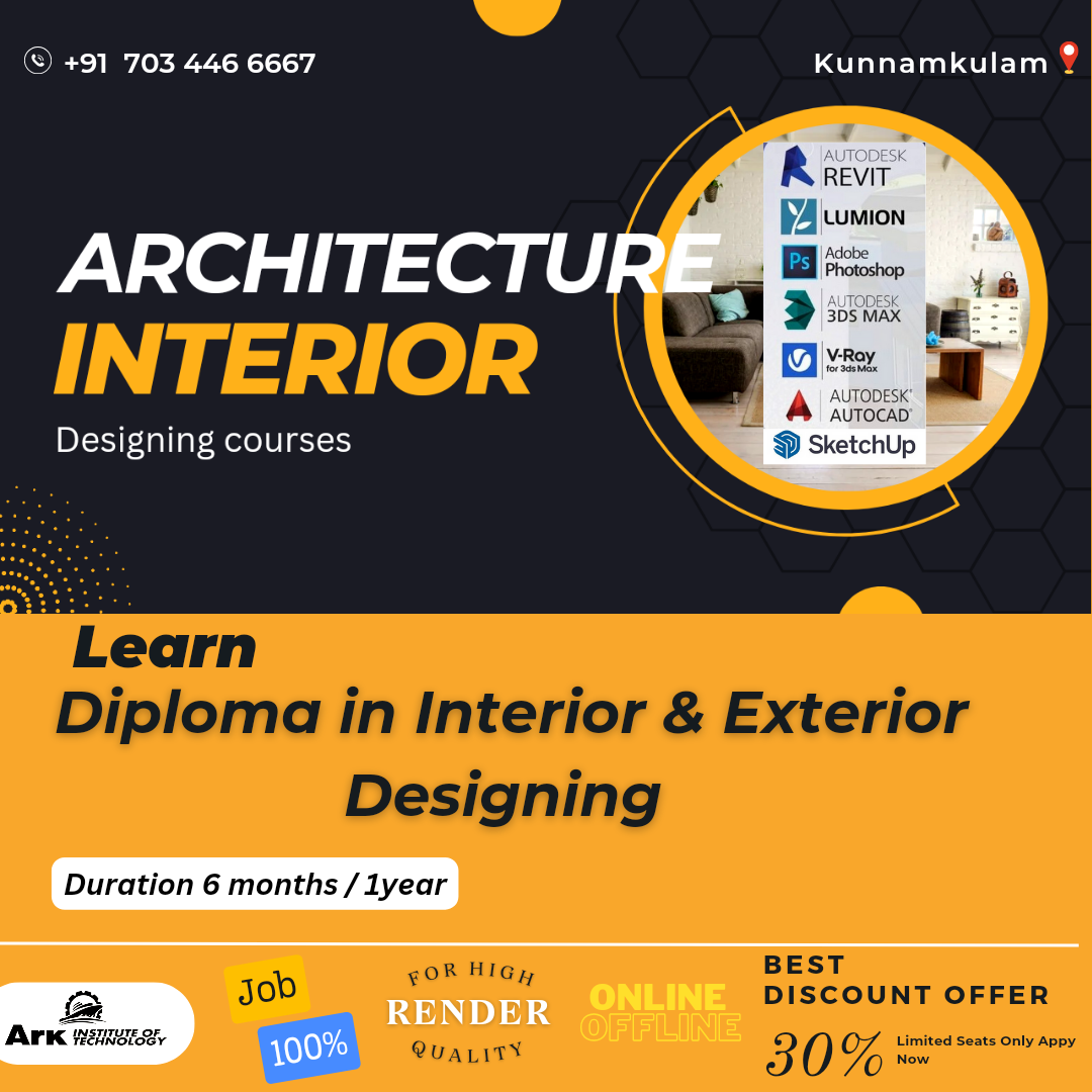 Ark Institute is providing Architecture and Interior Designing courses like Diploma in Interior & Exterior designing, AutoCAD, 3dsmax (corona/vray), Revit Architecture,SketchUp,Lumion.