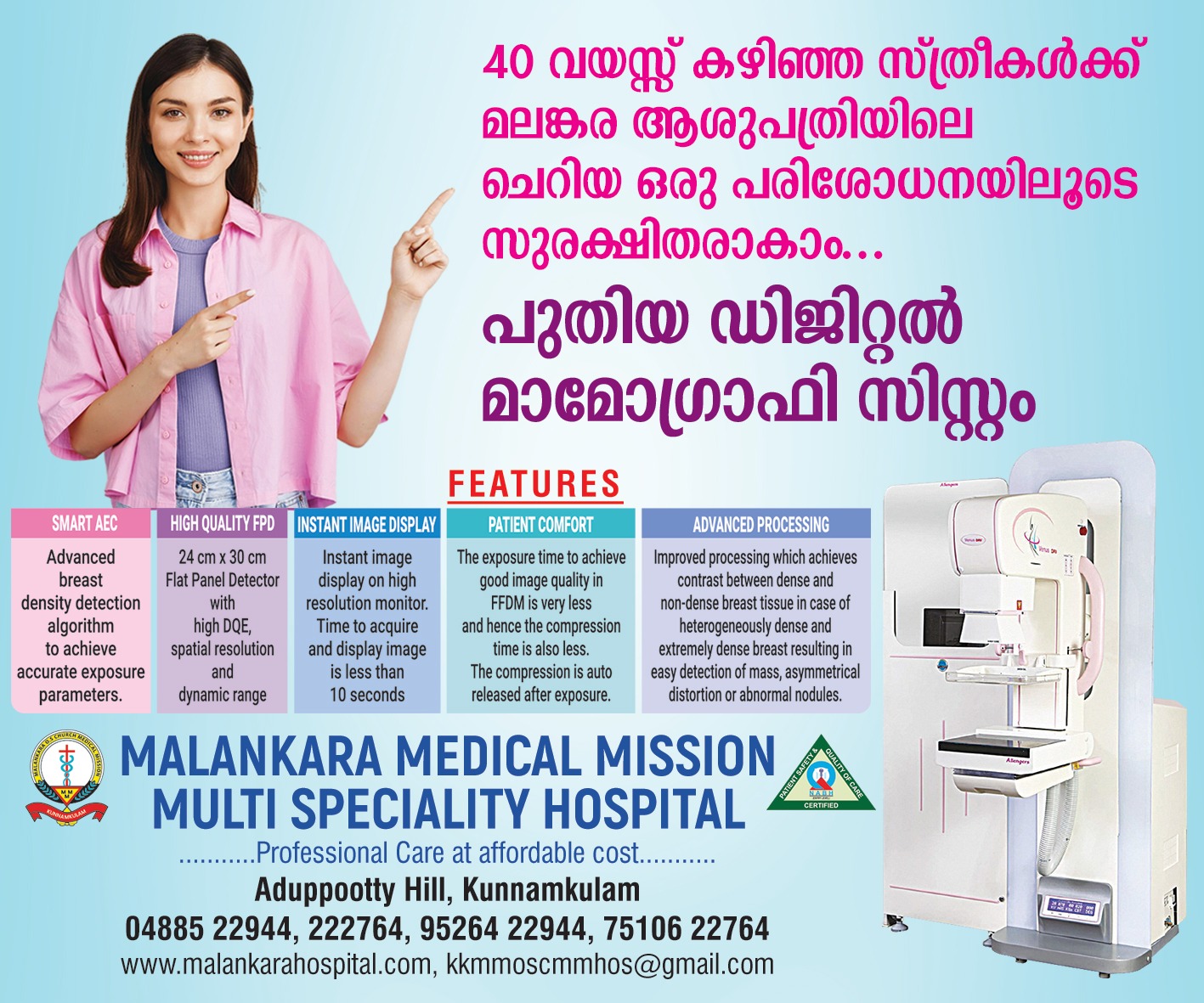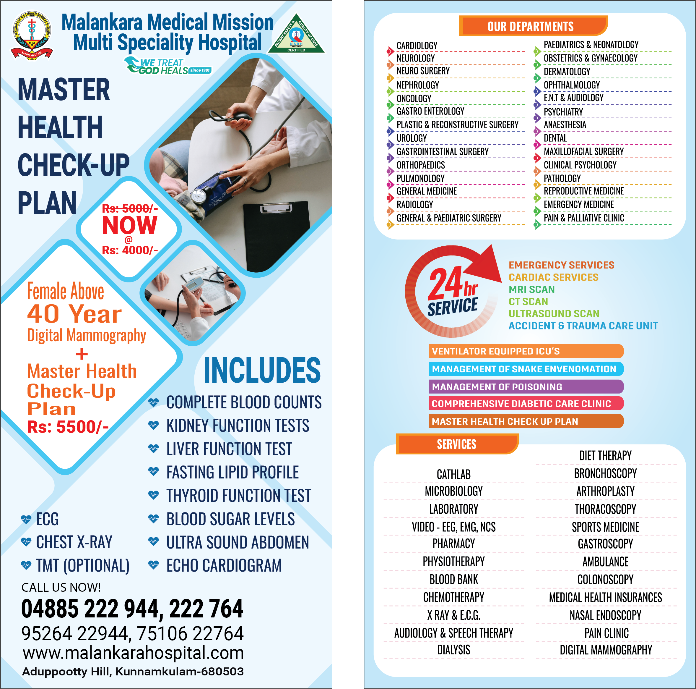 MASTER MEDICAL CHECK Plan is just for 4000/- For Female Above 40 years Master Check up + Digital Mammography a special plan is Just for 5500