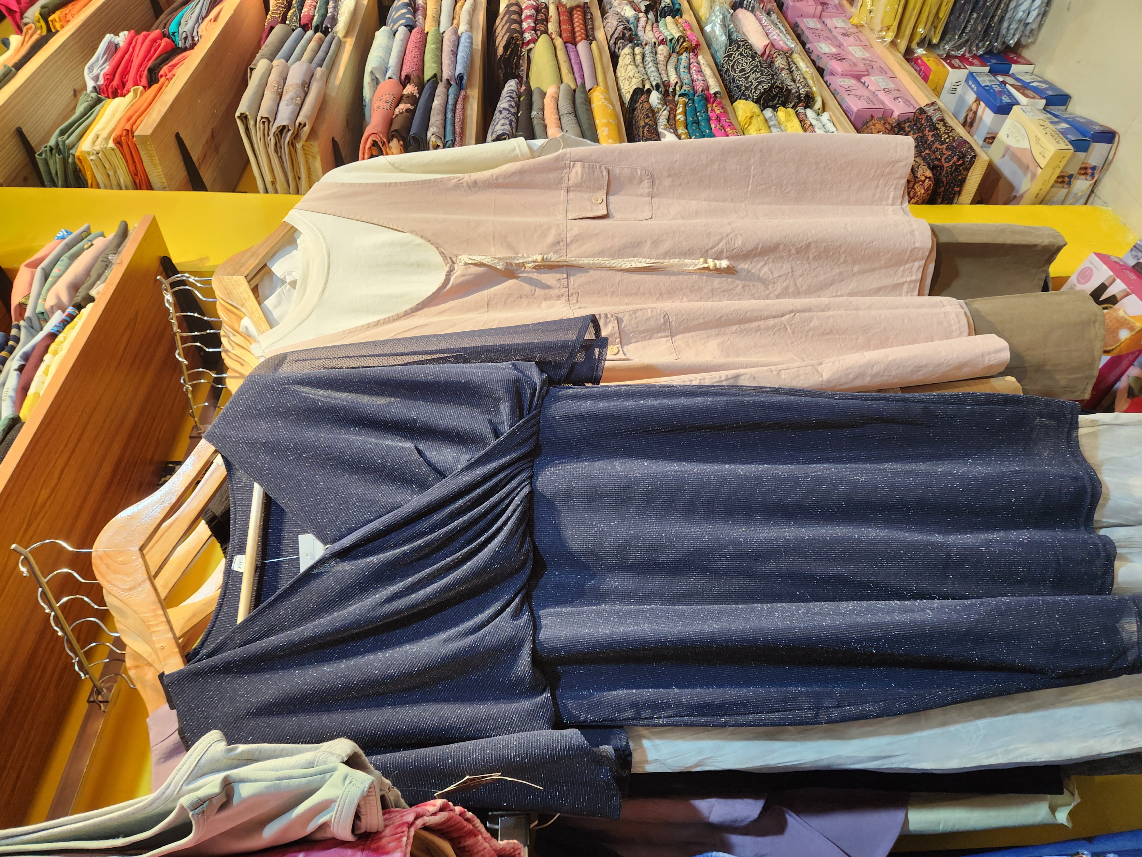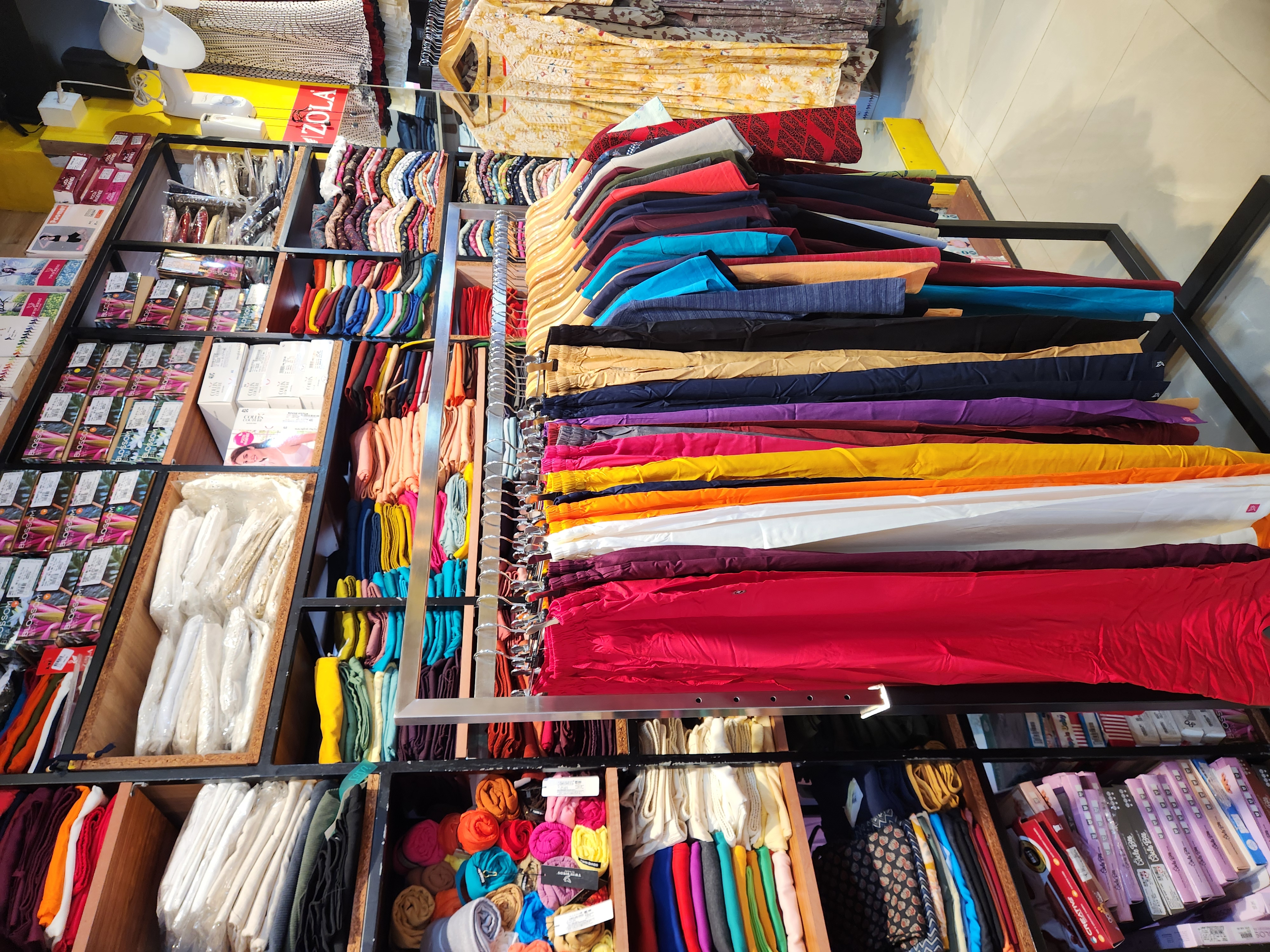 We have huge varities of ladies churidars ready made and materials, western wears, inner wears, kurthi, kurthas, leggings, plazzo, pants, party wears, branded kurthi and leggings